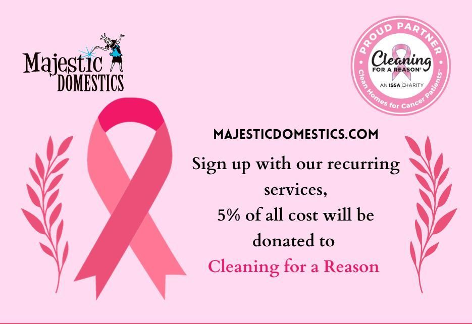 At Majestic Domestics, care extends beyond cleaning. As a proud partner of Cleaning for a Reason, we are honored to support cancer patients throughout the Denver–Boulder area by providing complimentary home cleaning services during treatment. This mission is deeply personal. Our founder, Natalie Mikishko, is a cancer survivor herself, and her journey inspires our dedication to giving back.